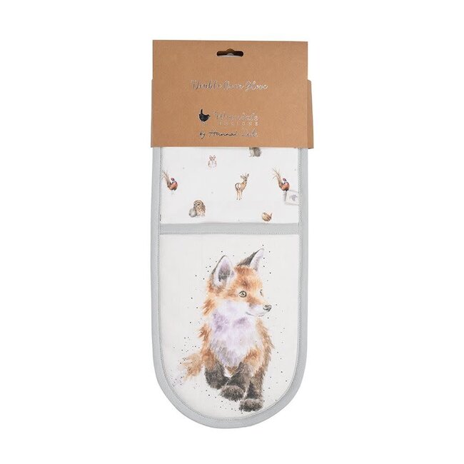 Deze mooie ovenhandschoenen zijn een prachtige aanvulling in je keuken en hebben prachtige illustraties van bosdieren op een lichtgele/ecru achtergrond. Ze zijn afgewerkt met contrasterende biezen, een handige lus om op te hangen en badstof langs de achterzijde.