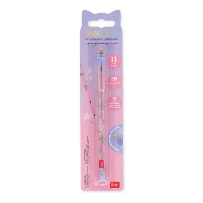 Maak schrijven extra leuk met de Legami Kitty – Stackable Pencil with Eraser.