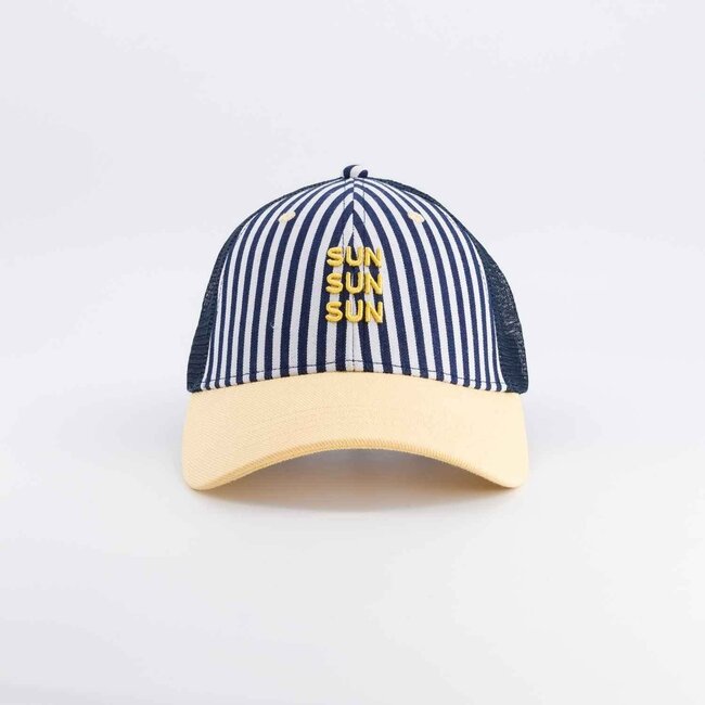 De frisse kleuren en de speelse “Sun Sun Sun” tekst geven deze pet een vrolijke, zomerse uitstraling, perfect voor elke sunny day.